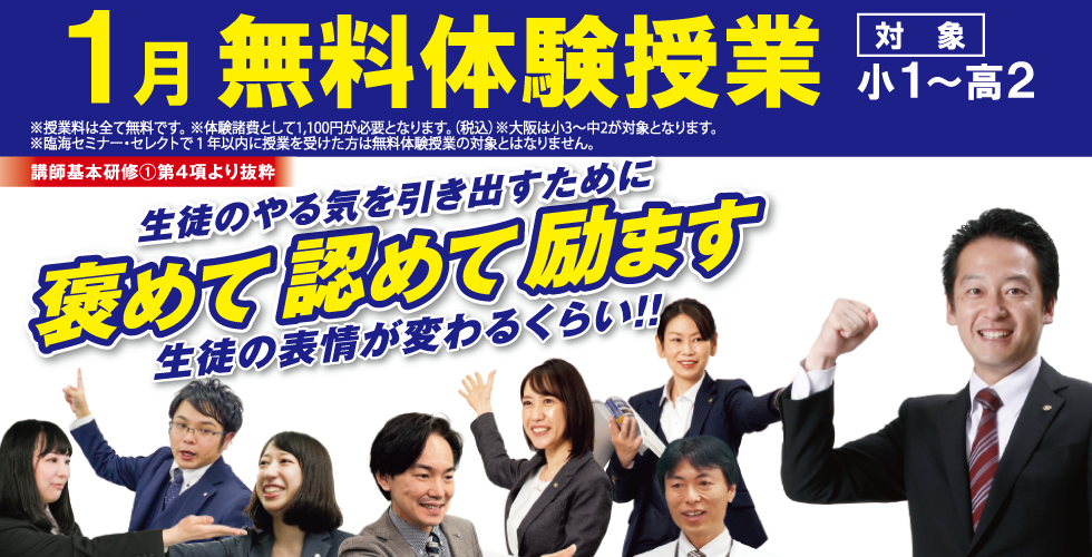 臨海セミナー・セレクトで1年以内に授業を受けた方は無料体験授業の対象外となります。