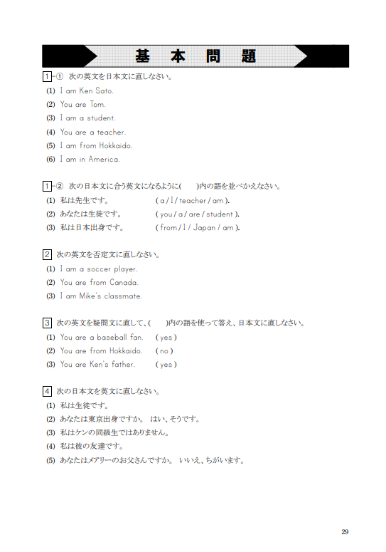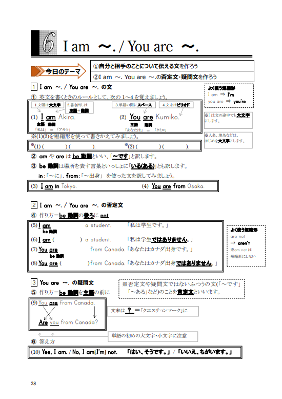 特に3月までの中学進学準備講座では、be動詞と一般動詞を正しく理解し、使い分けることができるようにしていきます。