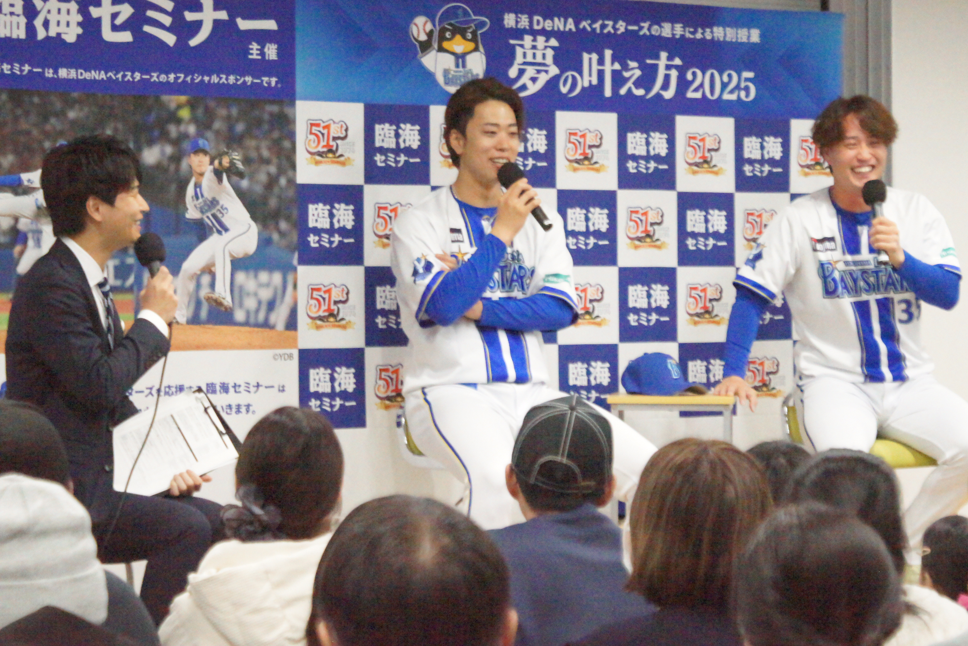 横浜DeNAベイスターズの橋本選手と入江選手を講師に迎え、「夢をどうやって形にするか」をテーマにお話しいただきました。