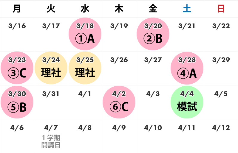 ※4/3(金)は1学期の模擬試験を実施いたします。受験をご希望の方、4月入塾される方に別途ご案内いたします。