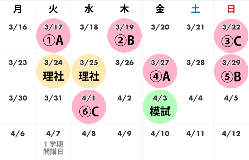 ※春期理社は3/24(火)または3/25(水)のどちらか1日開催となります。クラスによって開催日が異なります。