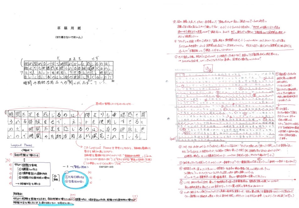 講師やティーチングアシスタント(以下、TA)による添削がとにかくすごかったです!私の答案にも余白にびっしりと丁寧な添削がされていました。考えるプロセスが非常にわかりやすく、自分の力になる実感がありました。大手予備校に比べても丁寧で他の予備校に通っている友達からも「こんなの見たことがない‼」と言われました。特に数学は「こういうジャンルが出てきたら、こういう風に解きましょう」という記載があるので、本番で同じ傾向の問題が出てきたときに非常に役立ったと実感しました。