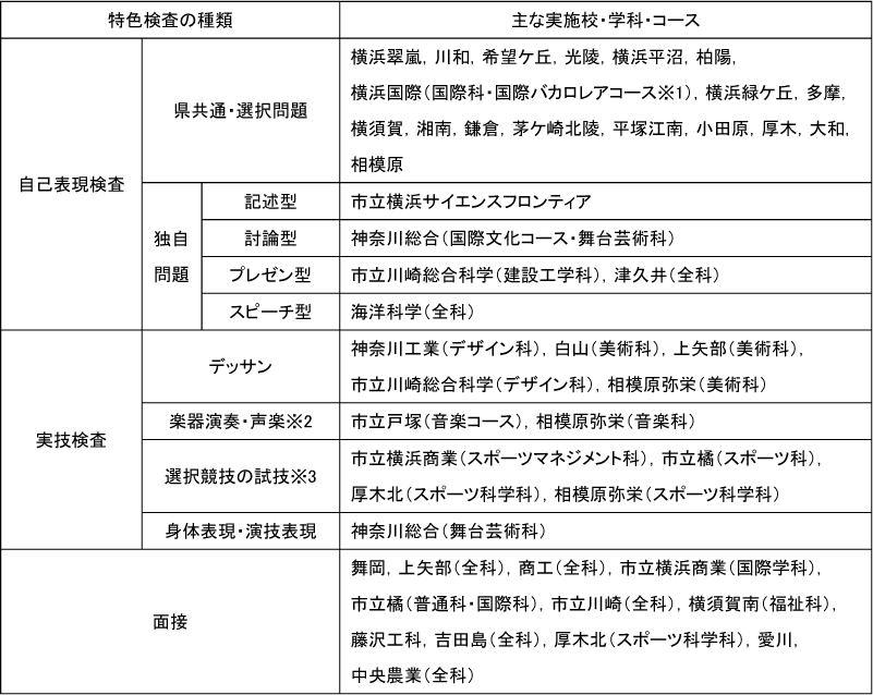 ※1 クリエイティブスクール(青葉総合(田奈・麻生総合の統合校)、釜利谷、横須賀南の普通科、小田原北(小田原城北工業・大井の統合校)の普通科、大和東)は、学力検査を実施しません。
