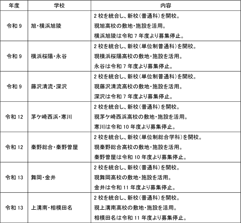神奈川県公立高校で令和8年度以降に統廃合・学科の改編や入試の変更が予定されている学校は下記の通りです。