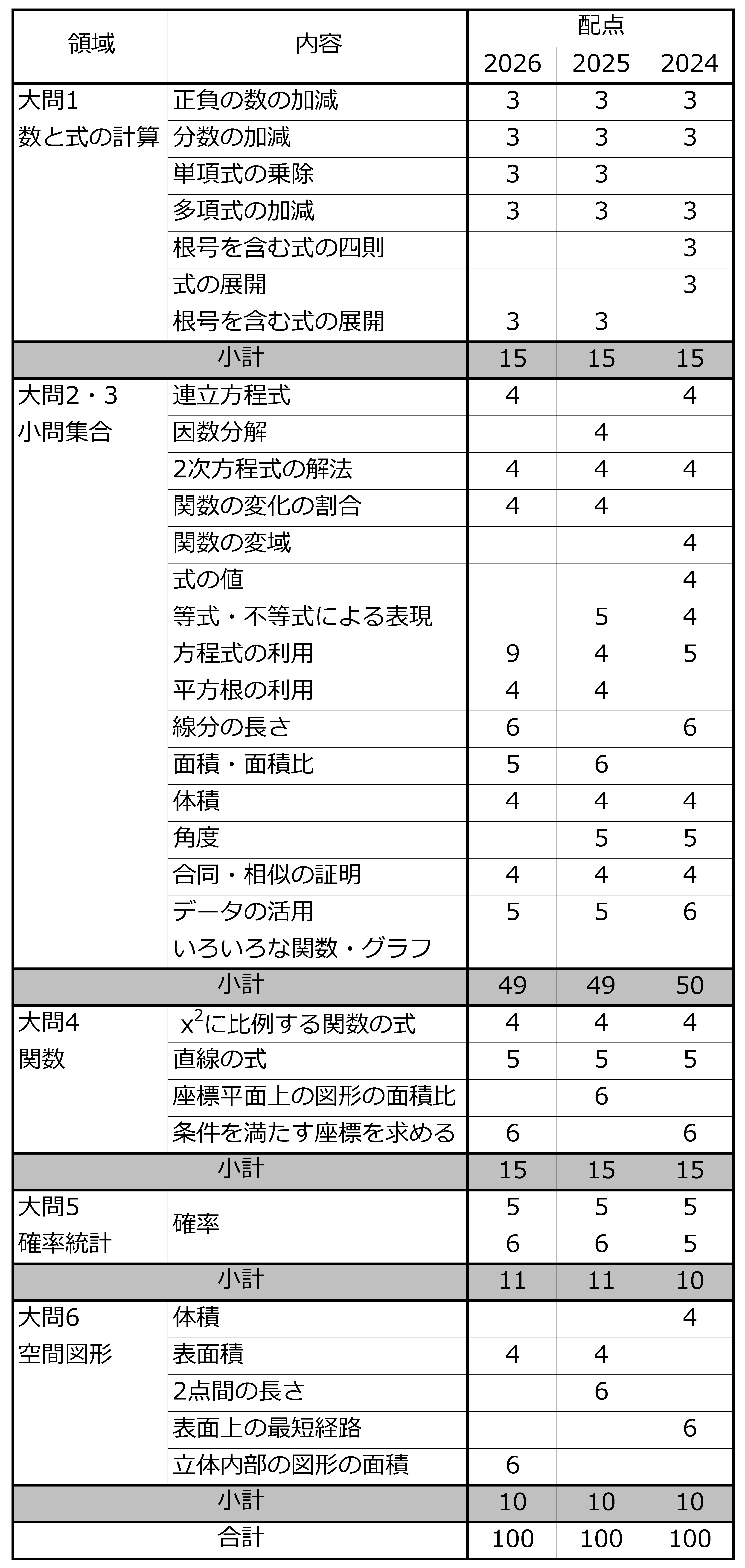 大問数は昨年と同様6題で、配点には多少の変化が見られました。