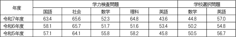令和7年度学力検査教科別正答率発表