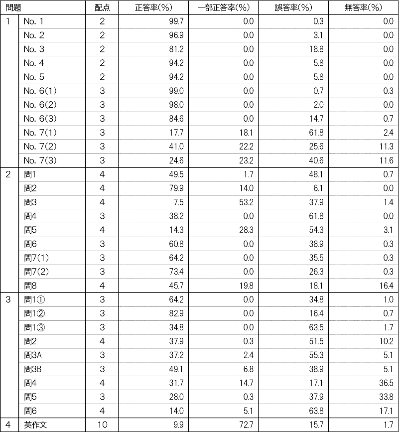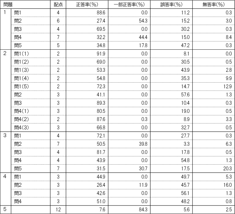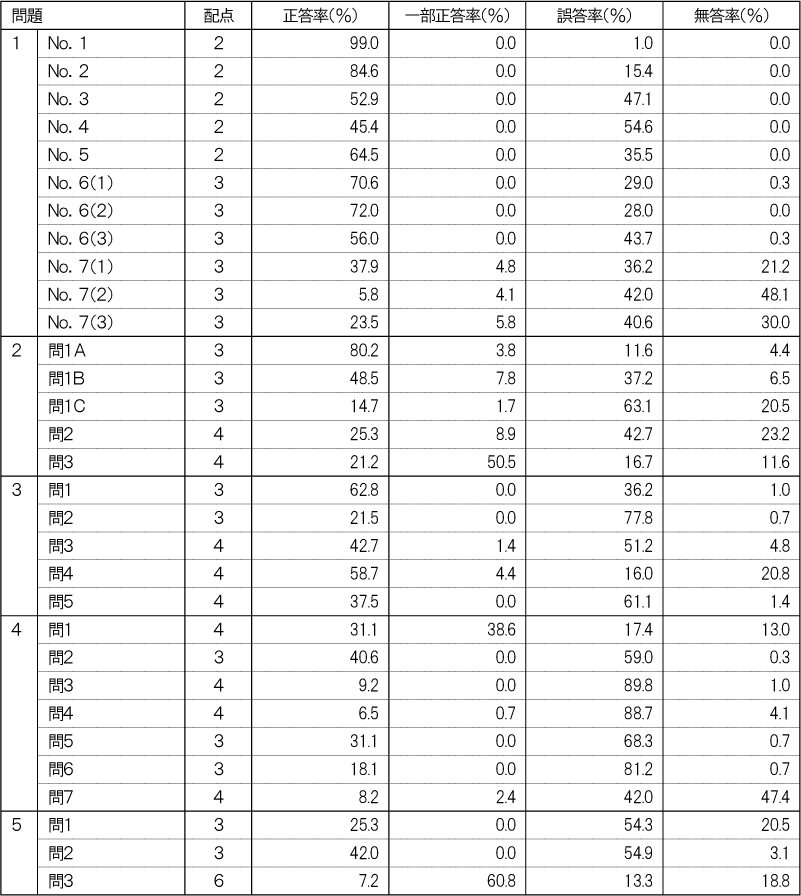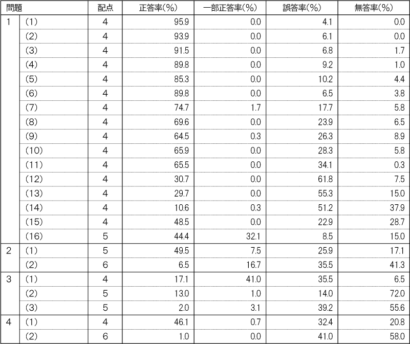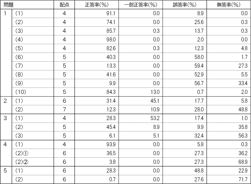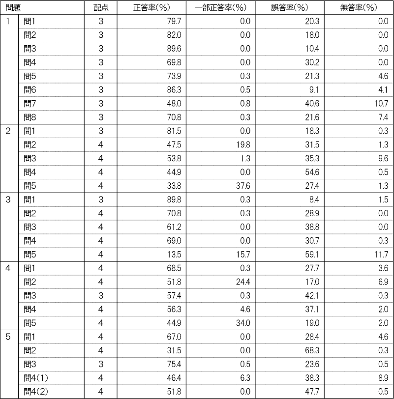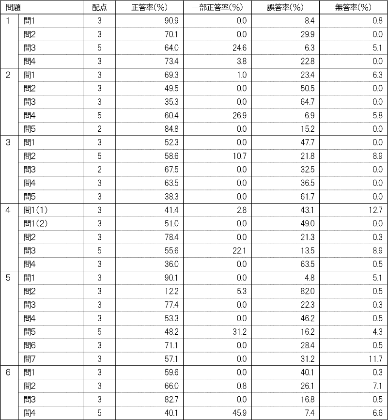 各教科に分けて出題の領域・内容ごとの正答率を記載します。教科ごとに、受験生全体の状況と自分が苦手な領域・内容を把握し、今後の学習にお役立てください。