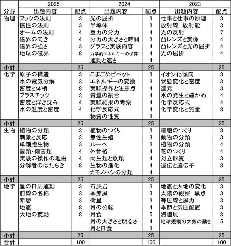 基本的な知識を問う問題と、図や文章を読み取る力を試される問題がバランス良く出題されました。