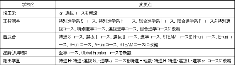 | 国士舘(選抜) 桜丘(Super Academic) 聖徳学園(データサイエンス) 女子美術大学付属 文教大学付属(アドバンスト) |