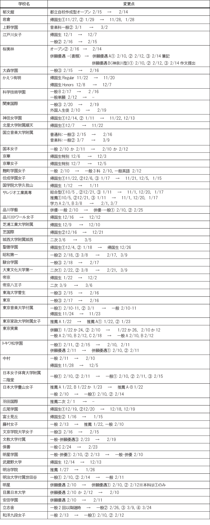 ■入試日の変更を行った学校