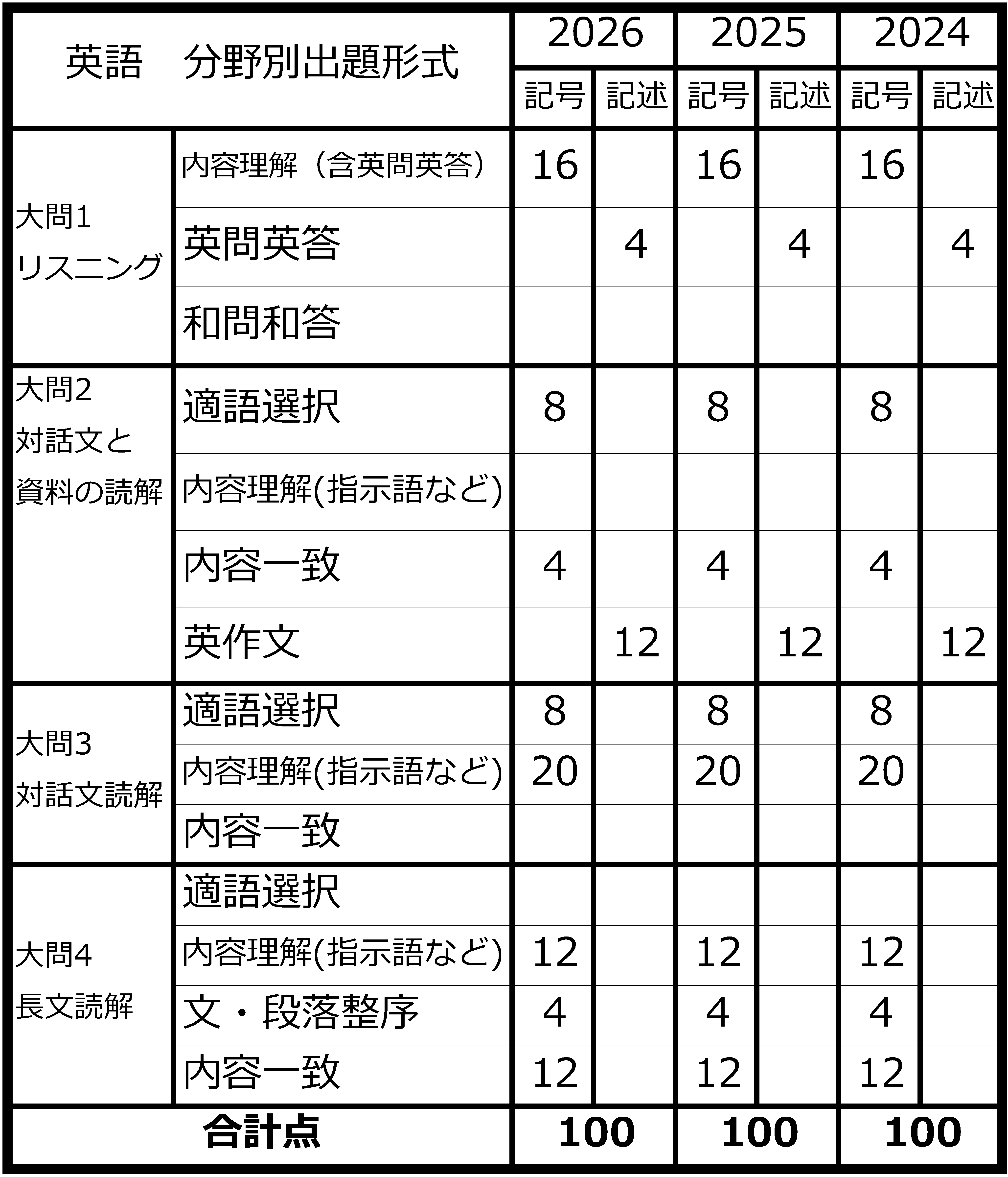 問題の構成は例年どおり大問4題、小問23問の出題です。英文記述の問題は今年度もリスニングの英問英答と英作文の2問が出題されました。