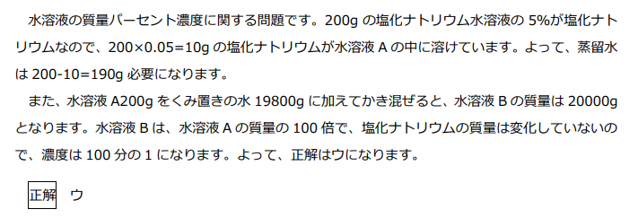 [2]は、例年通りレポート形式でテーマは生物の飼育に関してのものでした。水溶液、火成岩、オームの法則と電力、動物の分類が問われました。