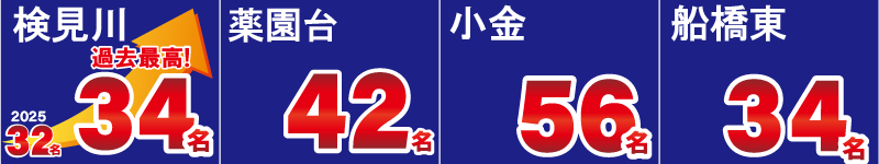 | 鎌ヶ谷 | 64名(2025年 37名⇒2026年 64名) 過去最高! |