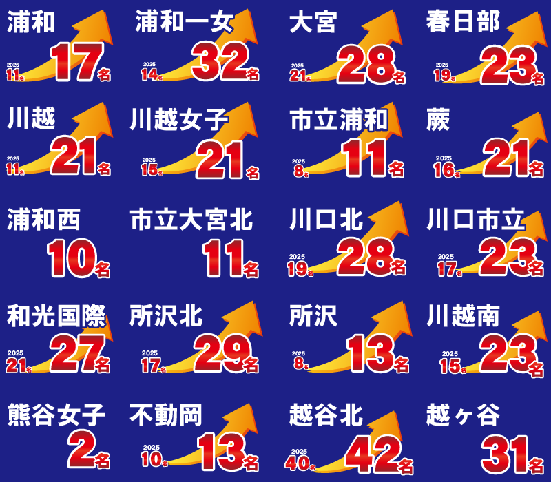 | 市立浦和 | 11名(2024年 4名⇒2025年 8名⇒2026年 11名) |