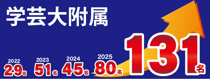 | 学芸大附属 | 131名(2022年 29名⇒2023年 51名⇒2024年 45名⇒2025年 80名⇒2026年 131名) |