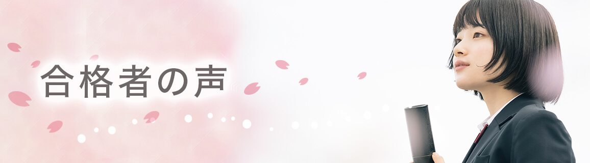 最初は分からないことばかりでしたが、毎日一生懸命勉強したり、先生に分かるまで教えてもらったりして、自信を持てるようになりました。苦手な部分も工夫して勉強し、少しずつ正解できるようになりました。本番は、今までの努力を信じ、全力をつくしました。そして、合格という追いかけてきた夢を、ついにつかみ取ることができました。最後まで教えてくれた先生方のおかげです!