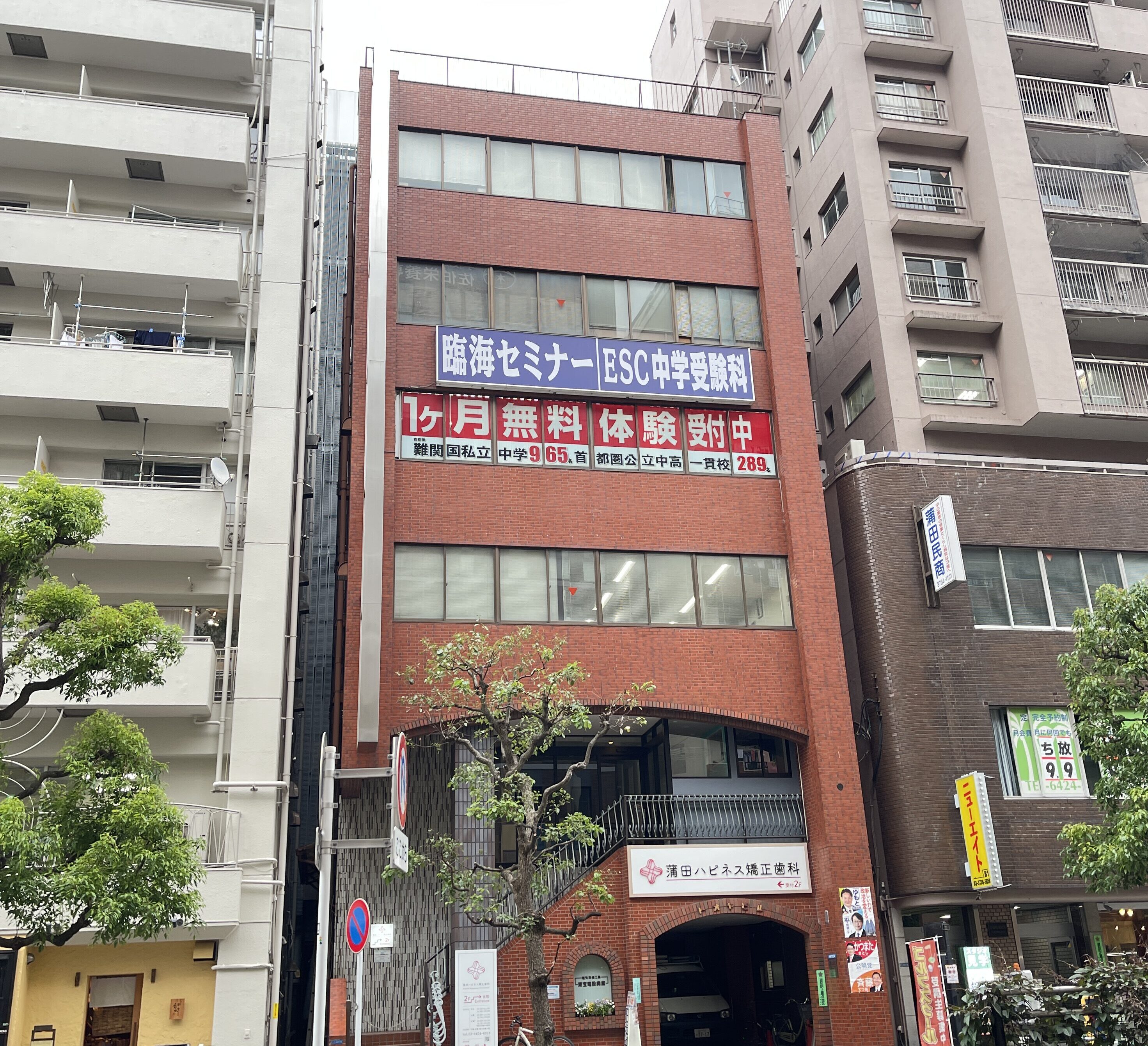 東口を出て右方向へ、そのまま区役所前本通りを直進。大田区役所前交差点を過ぎた左側のビル。